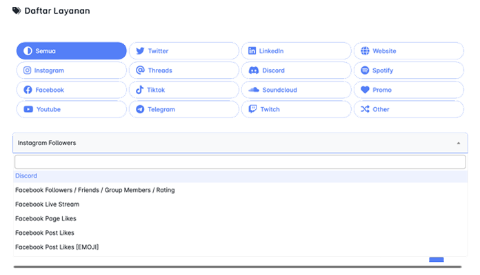 Kami menyediakan berbagai macam layanan sosial media untuk kebutuhan Anda.